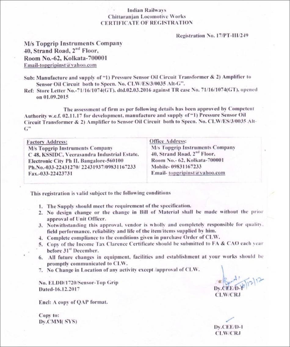 Our products have been approved and accepted by various Railway units and departments after rigorous inspection and testing procedures.